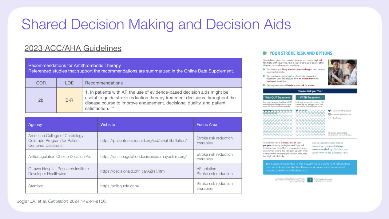 Multiple SDM tools (including those at ACC/AHA guidelines), support patient education.