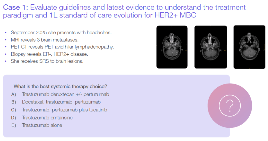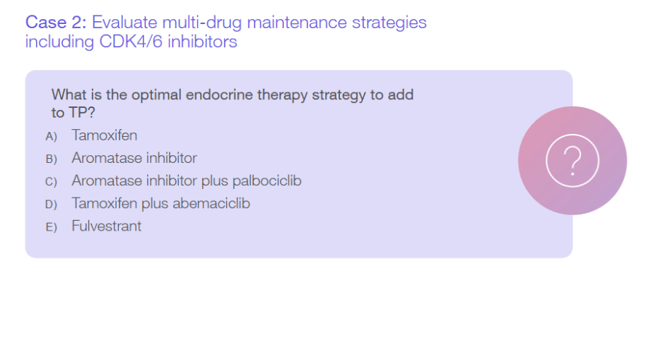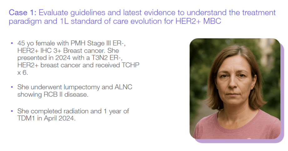 - In relation to this case, Dr Sarah Sammons explained at our recent grand round the PATINA trial for ER+, HER2+ MBC: