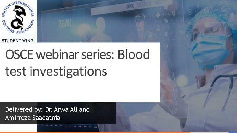 Introducing the BIDA SW Peer Teaching Series: OSCE Data Interpretation Webinar Series. This is a series of free webinars focused on interpreting data from OSCE exams. Join Dr. Arwa Ali and Amirreza Saadatnia for the fifth part of this series, "Basic Bloods Interpretation," on 21 February 2023, 7pm. Join for case discussions at MedAll.