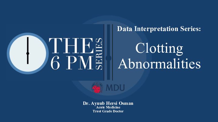 Data Interpretation Series: Clotting Abnormalities Dr. Acute Medicineman Trust Grade DoctorSocial Medias Intro Learning Objectives • Haemostasis • INR and APTT (activated partial thromboplastin time) • Touch on bleeding disorders • Touch on procoagulant disorder • Thrombotic Microangiopathies Case 1 Question A 50-year-old gentleman presents to the ED with bleeding following a sawing injury to his arm, cutting through the radial artery. The bleed has been managed and a full blood count. His platelet count is abnormally low (<150) but the cause is not known. What is the first step to haemostasis? A. Clot Formation B. Vasospasm C. Clot dissolving & repair D. Platelet plug formation E. Don’t know Case 1 Answer What is the first step to haemostasis? A. Clot Formation B. Vasospasm C. Clot dissolving & repair D. Platelet plug formation E. Don’t know Case 1 Haemostasis 2.Platelet plug 1.Vasospasm formation (primary haemostasis) Primary Haemostasis 1. Damaged blood vessel = collagen exposure 2. VWF binds to GP receptors = platelet adhesion 3. Platelet activation = vasoconstrictio2)(TXA & dense granule release 4. Serotonin = further vasoconstriction. 5. ADP = platelet activation via purinergic (P2Y) 3.Clot receptors & activates fibrinogen receptors 4. Clot dissolve formation (GPIIb/IIIa). & repair haemostasis) 6. Sticky platelets & aggregation = soft platelet plug formation Case 1 Secondary Haemostasis Initiation Phase Amplification Tissue Factor (IIIa) IX VII VIIa XIa IXa iCa+ Xa X VIIIa iCa+ Prothrombin (II) Thrombin (IIa) + Feedback Va Mesh Fibrin Fibrinogen D-Dimer Propagation Phase Case 2 Question A 60-year-old lady presents to her GP for her regular INR check. She is on warfarin for AF – her target INR is 2.5. The measure INR is 4 but she is well otherwise. Which clotting factors does the INR assess? A. VIII, IX, XI, XII B. I, II, V, VII, X C. III, IV D. I, II, III E. Don’t know Case 2 Answer Which clotting factors does the INR assess? A. VIII, IX, XI, XII B. I, II, V, VII, X C. III, IV D. I, II, III E. Don’t know I = Fibrinogen INR & APTT II = Prothrombin INR = Fibrinogen, Prothrombin, V, VII, X III = Tissue Factor APTT = VIII, IX, XI, XII IV = Ca+ PT (Prothrombin Time) & INR Ratio of patient’s PT to a normal PT Case 3 Question A 25-year-old gentleman presents to the ED following excessive bleeding post- dental extraction. He is otherwise normally fit and well. He states his sister had a have?ar issue in the past. Which bleeding disorder does this patient most likely A. Haemophilia A B. Haemophilia B C. Von Willebrand’s Disease D. Factor V Leiden E. Don’t know Case 3 Answer Which bleeding disorder does this patient most likely have? A. Haemophilia A – 2 ndmost common UK B. Haemophilia B – 3 most common C. Von Willebrand’s Disease D. Factor V Leiden – Procoagulant disorder E. Don’t know Typical history of VWD includes easy Epidemiology bruising, epistaxis > 10mins and Most common in the UK is VWD, followed bleeding following dental extractions. by Haemophilia A and then B.Case 3 Bleeding Disorders Features Haemophilia Haemophilia VWD A B Deficiency VIII FIX VWF Inheritance X-Linked X-Linked Autosomal Dominant APTT Increased Increased Increased Case 4 Question A 35-year-old gentleman presents to the ED following with a red hot swollen leg. His FBC and CRP are normal, however he has a positive D-Dimer. He is otherwise patient could have?ll. What is the most likely procoagulant disorder that this A. Factor V Leiden B. Protein C deficiency C. Antithrombin deficiency D. Prothrombin Mutation E. Don’t know Case 4 Answer What is the most likely procoagulant disorder that this patient could have? A. Factor V Leiden B. Protein C deficiency C. Antithrombin deficiency D. Prothrombin Mutation E. Don’t know Protein C & S are anticoagulant All procoagulant conditions are more proteins that are vitamin K common compared to the bleeding dependent. Factor V Leiden is disorders. resistant to the anticoagulant effect of protein C. Case 4 Bleeding Disorders Features Factor V Protein C/S Antithrombin Prothrombin Leiden deficiency Deficiency Mutation Disease Protein C Decrease Decreased Excess unable to anticoagulant inhibition of Prothrombin inhibit Factor proteins factors II, V, (II) V IX, X, XI, XII Inheritance Autosomal Autosomal Autosomal Autosomal Dominant Dominant Dominant Dominant APTT Decreased Decreased Decreased Decreased Case 5 Question A 21-year-old gentleman presents to the ED with fever, headache and photophobia. He is being treated for presumed meningococcal septicaemia. As part of his VTE prophylaxis he is receiving Dalteparin (LMWH) .Three days into his treatment he is bleeding from both of his cannula sites. His bloods are seen below. What is the most likely cause of his abnormal haem results? Value Range A. Haemolytic Uraemic Syndrome Hb 121 130-180 WCC 5.5 4-11 B. Disseminated Intravascular Platelets 57 150-400 Coagulopathy C. Thrombotic Thrombocytopaenic INR 2.5 1.1-1.3 aPTT 45s 21-35s purpura Fibrinogen 0.5 2-4 D. Heparin Induced Thrombocytopaenia D-Dimer 750 <250 E. Don’t know Blood film Schistocytes Case 5 Answer What is the most likely cause of his abnormalhaem results? A. Haemolytic Uraemic Syndrome B. Disseminated Intravascular Coagulopathy C. Thrombotic Thrombocytopaenic purpura D. Heparin Induced Thrombocytopaenia E. Don’t know DIC = consumption coagulopathy Acute DIC both increased risk with bleeding and Thrombocytopaenia thrombosis in acute DIC. How it High INR & aPPT differs from other TMAs is the High D-Dimer & Low Fibrinogen coagulation factor consumption (i.e. Blood film = RBC Fragments (Schistocytes) raised INR and aPPT). Case 5 DIC • DIC is a clinical and laboratory diagnosis Investigations Aetiology FBC Malignancy • systemic process that causes thrombosis and bleeding Coagulation Obstetric (AFE • unlike other TMAs with normal coagulation studies. Fibrinogen & HELLP) • DIC is associated with microvascular thrombi that contain