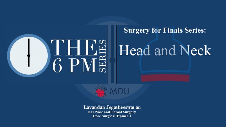 Surgery for Finals Series: Head and Neck Lavandan Jegatheeswaran Ear Nose and Throat Surgery Core Surgical Trainee 1Social Medias Case 1 Question You are asked to review in GP, an 18 year old who reports a sore throat ongoing for 4 days. They are able to drink but find it painful to swallow food. They have tried paracetamol for the pain, but there seems to be little relief from it. They do report having on and off fevers but says this settles with the paracetamol. They have not experienced this before. A/ Patent E/ A. Tonsillitis B/ B. Quinsy (peritonsillar abscess) Sats 95% OA RR 17 C. Pharyngitis D. Uvulitis C/ D/ HR 101 Regular GCS 15 E. Don’t know BP 110/70 BM 8.0 CRT 4 seconds PEARL HS I + II + 0 Temp 37.0 Case 1 Answer What is the most likely cause? This is a classic presentation of tonsillitis. A. Tonsillitis Short acute history of a sore throat B. Quinsy (peritonsillar abscess) alongside the presence of enlarged C. Tonsillar stone erythematous tonsils which may or may not D. Uvulitis have exudate on them. E. Don’t know Quinsy’s tend to have normal appearing tonsils – it is an abscess in the peritonsillar space which displaces the tonsil medially and inferiorly thus making them look large. Tonsillar stones tend to painless but patients may report halitosis and it can predispose them to tonsillitis. Uvulitis tends to involve an enlarged erythematous uvula. Case 1 Explanation • Infection and inflammation of the tonsils • Clinical Features • Sore throat • Odynophagia • Fever • Referred ear pain • Hallitosis • Exudative tonsils • Common organisms • Group A B haemolytic strep • EBV • Coxsackie • HSV Case 1 Explanation • Centor Criteria for antibiotic prescribing in tonsillitis: • Patients with one or none of these criteria are unlikely to have GABS • Consideration of antibiotic prescription should be limited to patients with three or four criteria Case 1 Explanation • Tonsillectomy Criteria (SIGN guidance) Case 2 Question You are asked to see a 25 year old man who presents with an acute sore throat lasting for 4 days. He reports it feeling like his previous tonsillitis episodes however this time he reports his voice sounding more huskier than usual. He also reports an inability to swallow his saliva and an inability to open his jaw. What is your most likely differential? A/ Patent E/ A. Tonsillitis B/ B. Quinsy (peritonsillar abscess) Sats 99% OA RR 17 C. Pharyngitis D. Uvulitis C/ D/ HR 101 Regular GCS 15 E. Don’t know BP 110/70 BM 8.0 CRT 3 seconds PEARL HS I + II + 0 Temp 37.0 Case 2 Answer What is the most likely cause? The characteristic history of a patient who A. Tonsillitis reports a sore throat and is unable to open their B. Quinsy (peritonsillar abscess) jaw is indicative of a Quinsy. Patient may also C. Pharyngitis report voice changes and breathing difficulties (if the abscess tracks from the peritonsillar D. Uvulitis space into the parapharyngeal space) E. Don’t know The tonsils in this picture look to be of normal calibre. The pharynx and uvula doesn’t seem overly erythematous or swollen as would be expected in pharyngitis and uvulitis. Case 2 Explanation • Peritonsillar abscess – usually associated with recurrent tonsillitis, teenagers, male sex and smoking • Can cause severe airway difficulties – this is due to there being a potential space from peritonsillar space 🡪 parapharyngeal space 🡪 mediastinum • Examination involves: • Oropharyngeal exam • Fine nasendoscopy • Neck exam – for lymphadenopathy • Liverpool Peritonsillar Abscess Score • Management • IV dexamethasone stat – to improve trismus • Needle aspiration first line • Incision and drainage • Antibiotics • Difflam oral rinse • Analgesia • ?referral for tonsillectomy Case 3 Question You are asked to see a 3 year old boy who has presented with acute stridor. They are unvaccinated. Mother reports child initially had a sore throat and being off food and then suddenly deteriorated. He has been fit and well prior to this episode. The patient is drooling and seems unable to swallow. A/ Stridor E/ A. Croup B/ B. Quinsy (peritonsillar abscess) Sats 99% 15L RR 40 C. Epiglottitis D. Viral induced wheeze C/ D/ HR 101 Regular GCS 15 E. Don’t know BP 110/70 BM 8.0 CRT 3 seconds PEARL HS I + II + 0 Temp 37.0 Case 3 Answer What is the most likely cause? This is a paediatric emergency and it is vital A. Croup that senior support is available on hand. The B. Quinsy (peritonsillar abscess) classic picture of a tripodding unvaccinated C. Epiglottitis child with stridor and drooling is D. Viral induced wheeze synonymous with epiglottitis. E. Don’t know Stridor is associated with upper airway obstruction hence viral induced wheeze is not included as part of the differential. Quinsy’s can cause drooling but is unlikely to cause upper airway obstruction (unless there is tracking of the infection) Croup tends to cause a typical barking cough. Case 3 Explanation • Inflammation of the epiglottis • Incidence reducing due to introduction of Hib vaccine in children • Symptoms • Sore throat • Airway/breathing difficulties • Odynophagia • Stridor • Hoarse voice • Fever • Drooling • Can also be caused by strep pneumoniae, fungi, viruses (VZV and HSV), smoking and chemical burns Case 3 Explanation • Management • Senior support is required! • Do not aggravate the child • A-E approach – child may need to be intubated to allow treatment • IV antibiotics • IV dexamethasone • Most people recover in 1 week and can be discharged in 5-7 days Case 4 Question You have been asked to review a 10 year old boy in the ENT clinic. Mother reports that the child has had a prominent lump on their neck. It is in the midline and has not caused the patient any problems. Mother is worried that it might be a malignancy. O/E the lump moves upwards on sticking the tongue out and feels fluctuant. An USS is performed also. A. Cystic hygrom