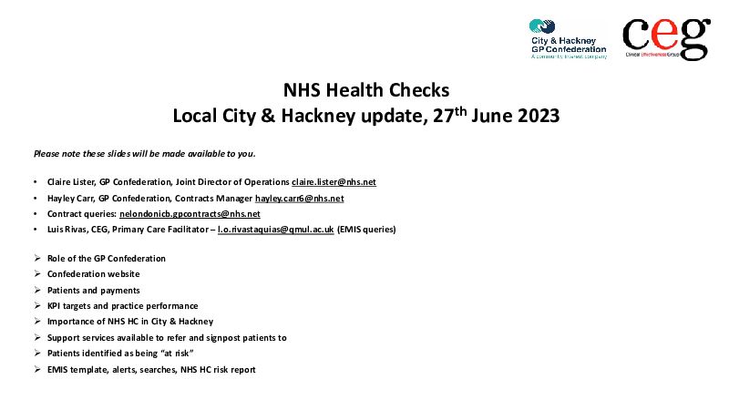This is a Face to Face event, this bespoke NHS Health Check Training is a great opportunity to update your knowledge nationally and locally, whilst networking with colleagues from across City & Hackney.