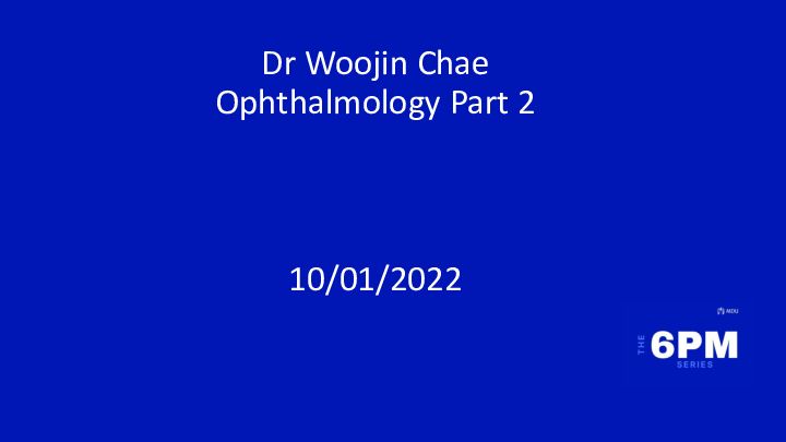Dr Woojin Chae Ophthalmology Part 2 10/01/2022Revision from last time 1) Uveitis vs scleritis 2) Uveitis vs endophthalmitis 3) Anterior vs posterior blepharitisCase 1 A 60F presents with a gradual blurring of vision, she’s having trouble reading fine prints and says its really hard to drive at night time. She has a past medical history of RA and Crohn’s disease. No history of trauma. What’s the likely diagnosis? a) Senile cataracts b) Secondary cataracts c) Glaucoma d) Macular degeneration e) Retinitis pigmentosaHow does the surgery workCase 2 70F had a cataracts surgery, 4 days later she’s coming in to her GP with a painful red eye. Her vision (which was initially improved post op) has now become blurry and she is seeing “floaters”. What do we do? a Reassure her that the eye is settling b Needs to be referred to an eye unit immediately. c She will need steroid drops only. d Treatment of the condition requires intravitreal antibiotics only. e Do nothing and book her up for a follow up in 2 weeks.Case 3 60F patient who does not usually wear glasses. Presenting today due to a very painful eye, nausea and abdo pain. She says she has blurry vision and the lights in ED have halos around them when she looks up, but she tries not to and asks for the lights to be turned off as the light makes things worse. What do you expect on examination? What is the likely cause? a) Uveitis b) Glaucoma c) Cataracts d) Meningitis e) KeratitisCase 4 40M presents to your clinic after his optometrist visit for new glasses. He says that he has needed new glasses more frequently and noticed his peripheral vision isn’t as good as before. He plays in his sunday football league and says that it affects his performance, what's going on? a) Acute angle closure glaucoma b) Chronic angle closure glaucoma c) Primary open angle glaucoma d) Secondary open angle glaucoma e) Nothing… he’s just bad at footballImage courtesy of Santorio eye institute)Treatments - reducing IOP Medical - Beta-blockers - Pilocarpine - Prostaglandin analogues - Alpha 2 agonists Laser - Argon laser trabeculoplasty Surgical - Trabeculectomy - Implants - Cyclodestructive proceduresCase 5 A mother who had GDM brings her baby for her 6 week post natal check. The baby is noted to be on the heavier side, no head abnormalities, is warm well perfused, normal tone and movements of limbs. You hear a mid systolic murmur, lungs are clear and genitalia are normal. Barlow and Ortolani tests are negative and the spine has normal curvature with no lesions noted. You note a small opacity in the baby’s eye. a) Follow up appointment b) Refer to ophthal c) Reassure and discharge d) Give antibiotic drops e) Make sure the baby is eatingCase 6 80M coming in for routine eye check up. What can you see on the slide? a) AV nipping b) Atrophy c) Drusen d) Decreased pigmentation e) Disc cuppingCase 7 40M presenting with troubling driving at night a) Macular degeneration b) Cataracts c) Glaucoma d) Retinitis pigmentosa e) Diabetic retinopathyCase 8 Which of these do you not see? a) Haemorrhages b) Exudates c) Proliferation d) DotsCase 9 What is the likely diagnosis? a) Diabetic retinopathy b) Vitreous haemorrhage c) Retinitis pigmentosa d) Amaurosis fugaxDiabetic retinopathyMore on Diabetic Retinopathy Stage Features Mild Microaneurysms Moderate Dots and blots and another finding: - Cotton wool spots - Hard exudate - Venous beading Severe Following signs but NO neovascularisations - >20 dots/blots in all quadrants - Definite venous beading Proliferative If neovascularisation present or vitreous haemorrhageRetinal Vasculature A Window on the Brain J. David Spence and J. Alexander FraserHypertensive Retinopathy Stage Grade 1 Barely any arterial narrowing Grade 2 Obvious narrowing of arterials Grade 3 G2+retinal haemorrhages, exudates and cotton wool spots or retinal oedema Grade 4 G3+papilloedemaCase 10 Patient presents with sudden onset of blurry vision. No pain in eye. a) Hypertensive retinopathy b) Diabetic retinopathy c) Glaucoma d) Central retinal vein occlusion e) Central retinal artery occlusionCase 11 Patient with previous TAVI presents to ED with delirium and a fall. You are the ophthal reg helping out during the pandemic. You decide to do some teaching with the students on their ED rotation and show them this on fundoscopy. What do we see?Case 12 45M smoker comes in with sudden loss of vision in his left eye. What is the diagnosis: a) Hypertensive retinopathy b) Amaurosis fugax c) Glaucoma d) Central retinal vein occlusion e) Central retinal artery occlusionCase 13 Rugby lad presents to ED after a bad tackle, he was struck hard on his nose and eye by his opponents knee. He now cannot see very well out of the affected eye, it feels like a dark red shadow is in his vision. The eye isn’t too painful he says and is more bothered about his nose. What is the most likely cause? a) CRVO b) CRAO c) Retinal detachment d) Vitreous haemorrhage e) GlaucomaCase 14 Patient 70M presents to GP as he sees floaters. He says it started a few days ago and he has not had ocular trauma. He says he can also see flashing lights and something that resembles a shadow on the side of his left eye. a) Macular degeneration b) Retinal detachment c) Amaurosis fugax d) Glaucoma e) CataractsNot covered in these lectures Neuro ophthalmology and visual pathway disorders Paediatric ophthalmology Trauma and in depth surgical aspect of ophthal