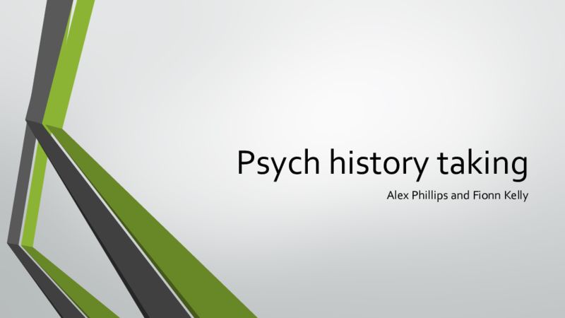 Psychhistory taking AlexPhillips and Fionn Kelly Learning objectives • Common psychiatric histories • Low mood • Anxiety • Hallucinations/delusions • Forgetfulness • Alcohol history • Suicide history • Mental state examination • Risk assessment Generalhistory 1. Introduction 2. Timeline 3. Core symptoms – mood, energy, enjoyment 4. BiologicalSx – sleep, libido, appetite, concentration, memory 5. ICE 6. Risk assessment 7. PMH DHSH FH 8. Conclusion SAD MOPP • Substance • Anxiety • Depression • Mood • Organic – important to rule out an organic cause • Personality • Psychosis Low moodhistory Differentials: 1. Depression 2.Bipolardisorder 3.Schizoaffective disorder • Lowmood • EasyDxtomiss • Askaboutprevious • Anhedonia • Askaboutprevious delusions • Fatigue manicepisodes and depressiveepisodes Hypothyroidism–simplescreeningquestions • Intolerance tocold, constipation, oligomenorrhoea, weight gain Anxietyhistory Differentials 1. Generalisedanxietydisorder 2. Panicattack 3. PTSD 4. Hyperthyroidism 5. Alcoholwithdrawal Hallucinations/delusionshistory Differentials: 1. Schizophrenia 2. Drug-inducedpsychosis 3. Delirium 4. Depressionwithpsychosis 5. Mania Forgetfulnesshistory Often a collateral history Differentials: 1. Alzheimer’s 2. Vascular dementia 3. Dementia with Lewy Body 4. Frontotemporal dementia 5. Severe depression Mania history Differentials: 1. Bipolardisorder 2. Schizoaffective disorder 3. Drug-inducedpsychosis Alcoholhistory(1) • Testing your communication skills • Can be difficult to start • ‘I’ve beenaskedtocome andspeaktoyoutodayregardingyouralcohol intake-is that okay?Iappreciate that some ofthese questions maybe difficult toanswersoifyou’dlike tostopat anytime,let me knowandwe can’ Alcoholhistory(2) CAGEquestionnaire: 1. HaveyoueverfeltthatyoushouldCut down on your drinking? 2. HavepeopleAnnoyed youbycriticisingyourdrinking? 3. HaveyoueverfeltGuilty about your drinking? 4. Haveyoueverhadadrinkfirstthinginthemorningtosteadyyournerves or get ridofahangover(knownas an Eye-opener)? Alcoholhistory(3) Features of dependence: • Tolerance “Do you have to drink more to get the same effect that you used to?” • Withdrawal– “What happens when you don’t drink?” • Compulsion – “Do you get any cravings or urges for alcohol?” • Primacy– “Would you say that drinking has become your main priority in life?” • Previous treatment- ”Have you ever had previous treatment for alcohol?What cause you to relapse?” Alcoholhistory(4) Consequences of drinking: • How has it caused problems in their life? • Work • Relationships • Problems with the law Complications: • Depression/anxiety • Psychosis • Self-harm/suicide (more later) Suicideattempthistory(1) Again,adifficultcommunicationstation ‘Howare youfeelingtoday?Iunderstandthat you(tooksome tablets last night). I’mreallysorrythat things got sobadthat youthought that was onlywayout’ Suicideattempthistory(2) Before, during andafterthe event. so they be found?Didyoutell anyone?Carry out any final acts?he only way out. Hadthey plannedthis?Didthey try to make it During:What actually happened? • Askspecific questions regarding the method • Overdose-Onwhat?Howmany tablets?Didthey lose consciousness? • Establish the severity ofa patients suicide attempt Was it theirintentionto die?Were they underthe influence ofalcohol? see yourfuture?re they found?Howdo they feel about it now?Do they have any thoughts ondoing it again?Howdo they RiskAssessment • Please do this- you will failJ • This is arguably the most important part of any psychiatric history • The type of history will inform the questions you’ll ask • Risk assessments by nature require us to ask patients difficult questions • Its important not to jump straight into them without a warning shot • E.g “Some of the questions I’m about to ask you might be upsetting and difficult to need to answer them”estions we ask everyone and please take as much time as you BasicStructure • Risk to self • Self-harm • Suicide • SelfCare and Risk-taking behavior • Protective factors • Risk to others • Violent thoughts • Safeguarding issues • Risk from others RiskAssessment–suicide • Ask about suicidal thoughts • Again, are they intrusive and the impact on the patients • Cause? – • Low self worth • stressful life event/ bereavement • Addiction • Unemployment • Have they made plans to end their life? • Final acts? - leaving a will to cancelling a phone contract • History of previous suicide attempt. RiskAssessment-self harm • Ask the patient have they ever considered/attempted self-harm? • Thoughts • What triggers them?Are they intrusive? Impact on patients? • Hx ofSelf Harm • When/How often? • Cause? Planned or Impulsive? • How does it make them feel? • Alcohol or Drugs? • Did they make anyone aware? • Would they do it again? • Cutting – where, how deep (treatment needed?)SelfCare Risk taking behavior Patient’s hygiene Gamblingandspending sprees Patient’s weight Risk takingsexualbehavior Livingsituation Drug and alcoholuse ProtectiveFactors • “Isanythingstoppingyou?” • “Whyhaven’tyoutakenyourownlife?” • ”Doyoufeellikeyouhaveanythingworthlivingfor?” • Assesssocialisolation Risk toOthers • ”Haveyoueverhadthoughtsofharminganyone?” • Have they made a plan? • Their intent • Do they carry a weapon? • Consideralcohol andsubstance misuse aroundchildren • Drunkdriving • Domesticabuse Risk fromOthers • Important to consider if patient is vulnerable • ”Does anyone ever hurt you physically?” • “Does anybody make you do things you don’t want to do?” • ”Do you feeling like anybody ever takes advantage of you? (steal or take money)” • Important to consider abusive relationships, people with intellectual disabilities and other vulnerable groups OSCEchecklist • 