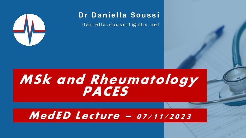 This medical on-demand teaching session is designed to help medical professionals learn how to recognize common MSK and Rheumatological presentations, and perform joint examinations (Hand, Knee and Shoulder) with special tests, as well as X-ray interpretation for