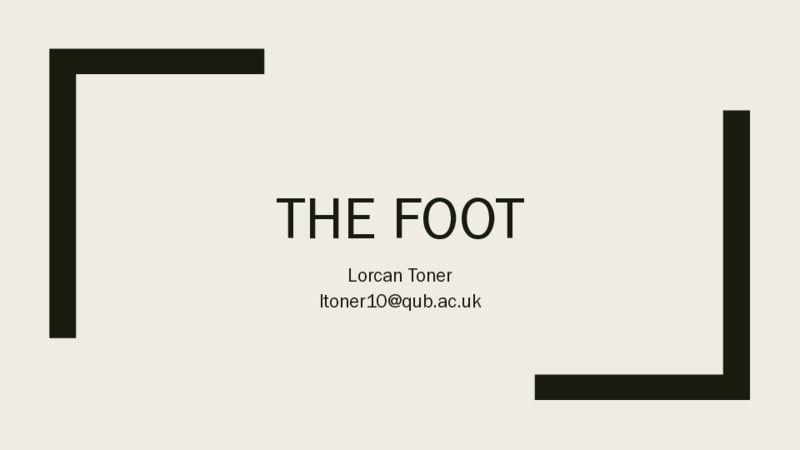 THE FOOT Lorcan Toner ltoner10@qub.ac.ukLearning Objectives ■ Identify and describe the boundaries and contents of the tarsal tunnel ■ Identify the extensor digitorum brevis and extensor hallucis brevis muscles and describe the innervation and actions of these muscles ■ Iand actions of these muscles (4 layers)ct of the foot and describe the innervationTHE TARSAL TUNNELThe Tarsal T unnel - Borders ■ Acts as a passageway, on the posteromedial aspect of ankle ■ Borders: – Floor: concave – formed by calcaneuspect of tibia, talus + – obliquely between medialm, spans malleolus + medial tubercle of calcaneus, forming the tunnel ■ The flexor retinaculum is continuous with the deep fascia of the leg and footThe Tarsal T unnel - Contents ■ From anterior to posterior: – Tibialis posterior tendon – Flexor igitorum longus tendon – Posterior tibial rtery and ein – Tibial erve – Flexor allucis longus tendon ■ Tom, ick and a Very ervous Harry ■ Tunnel divided into 4 compartments: the other 3 containing the tendonsdTarsal T unnel Syndrome ■ Entrapment and compression of the ■ Management: tibial nerve as it passes through the – Conservative: physiotherapy, tarsal tunnel NSAIDs, corticosteroid injections ■ Symptoms: – Sensory: altered sensation – Surgical: tarsal tunnel release along sensory distribution of tibial nerve – the sole of foot – Motor: (in severe cases) weakness and wasting of intrinsic foot musclesINTRINSIC MUSCLES OF THE FOOTDorsum of the Foot Extensor Digitorum Brevis Extensor Hallucis Brevis The extensor digitorum brevis muscle lies deep to the The extensor hallucis brevis muscle is medial to extensor tendon of the extensor digitorum longus digitorum longus and lateral to extensor hallucis longus ■ Attachments : ■ Attachments : – Originates from the calcaneus, the – Originates from the calcaneus, the interosseous talocalcaneal ligament and the interosseous talocalcaneal ligament and the proximal phalanx of the great toe and thes to the base of the proximal phalanx of the great long extensor tendons of toes 2-4 toe ■ Actions: ■ Actions: – extending the medial four toes at then – extending the great toe at thegus in metatarsophalangeal and interphalangeal metatarsophalangeal joint joints ■ Innervation: Deep fibular nerve ■ Innervatio: Deep fibular nerve Intrinsic muscles of dorsum of foot are both innervated by deep fibular nervePlantar Aspect of the Foot ■ 10 intrinsic muscles in sole of foot – Collectively stabilise the arches + individually control movement of digits ■ All muscles are innervated by the medial plantar nerve or the lateral plantar nerve – Both are branches of the tibial nerve ■ The muscles are organised into 4 layers which will be described from superficial to deep1 Layer • This layer is most superficial to the sole • Located immediately underneath plantar fascia • 3 muscles in this layer Abductor Hallucis Flexor Digitorum Brevis ■ The abductor hallucis muscle is located on the ■ The flexor digitorum brevis muscle is medial side of the sole, where it contributes to a located laterally to the abductor hallucis. It sits in small soft tissue bulge the centre of the sole, sandwiched between the ■ Attachments: digitorum longussis and the tendons of flexor – Originates from the medial tubercle of the ■ Attachments : plantar aponeurosis. It attaches to thehe – Originates from the medial tubercle of the medial base of the proximal phalanx of the calcaneus and the plantar aponeurosis. It great toe attaches to the middle phalanges of the lateral four digits. ■ Action: – Abducts and flexes the great toe ■ Actions: – Flexes the lateral four digits at the proximal ■ Innervatio: Medial plantar nerve interphalangeal joints. ■ Innervatio: Medial plantar nerve. st 1 Layer – cont. Abductor Digiti Minimi ■ The abductor digiti minimi muscle is located on the lateral side of the foot. It is homologous with the abductor digiti minimi of the hand ■ Attachments: – Originates from the medial and lateral tubercles of the calcaneus and the plantar aponeurosis. It attaches to the lateral base of the proximal phalanx of the 5th digit ■ Action: – Abducts and flexes the 5th digit ■ Innervatio: Lateral plantar nerve2 Layer • Contains 2 muscles • The tendons of flexor digitorum longus (FDL) and flexor hallucis longus (FHL) (extrinsic muscles) pass through this layer Quadratus Plantae ■ Lumbricals ■ There are four lumbrical muscles in the foot. They ■ The quadratus plantae muscle is located superior are each located medial to their respective tendon separated from the first layer of muscles by the of the flexor digitorum longus. lateral plantar vessels and nerve. ■ Attachments: ■ Attachments: – Originates from the tendons of flexor – Originates from the medial and lateral digitorum longus. Attaches to the extensor plantar surface of the calcaneus. It attaches hoods of the lateral four digits. to the tendons of flexor digitorum longus. ■ Action: ■ Action: – Flexes at the metatarsophalangeal joints, – Assists flexor digitorum longus in flexing the while extending the interphalangeal joints. lateral four digits. ■ Innervatio: The most medial lumbrical is ■ Innervati: Lateral plantar nerve. innervated by the medial plantar nerve. The remaining three are innervated by the lateral plantar nerve Neurovascular Structures : • Medial and lateral plantar arteries nd 2 Layer3rd Layer • Contains 3 muscles Flexor Hallucis Brevis Adductor Hallucis ■ The flexor hallucis brevis muscle is located on the ■ The adductor hallucis muscle is located laterally to medial side of the foot. It originates from two places the flexor hallucis brevis. It consists of an oblique on the sole of the foot and transverse head ■ Attachments : ■ Attachments: – Originates from the plantar surfaces of the – The oblique head originates from the bases tendon of the posterior tibialis