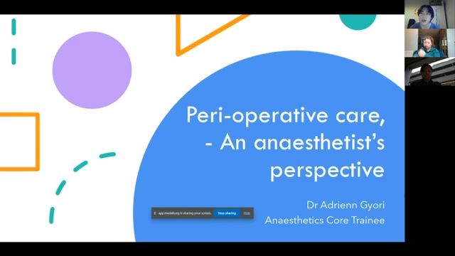 Thank you everyone who's showing up for today's session. Um Today we're having doctor G here to speak to us about um pre peri and postoperative care from the point of an anesthetist. Um, personally, I think it would be a very, very interesting session as it's something that's not really covered much in med school. Um Hope you'll enjoy it if you have any questions, just make sure to pop it in the chat box and we will kind of um stop and check in the middle of the session just to make sure your questions are answered. Um Thank you. Yeah, thanks for that. Um I'm Adrian, so I'm uh an anesthetic school trainee at hull er, at the moment. And uh yeah, this talk is basically on per care. Um So the pre the peri and the post and it's kind of coming from an anesthetist perspective. What I'll do is I've got three sections. It's gonna be a little bit of interactive stuff in there as well. So hopefully it's not gonna be death by powerpoint at 6 p.m. on a Wednesday. Um, and then after recession a session, sorry, I'll, I'll pause and if there's any questions and I'm obviously happy to take them and then at the end as well. So that further ado, so that's what we're going to be covering a few Bs as well, but nothing too scary or long, I promise. All right. So preoperative care. Now, hopefully with the power of mental meter, you can ping some words into a word cloud about what you think um because I'm constitute preoperative care. So what happens before a patient goes for an operation? So I'll just see if this works. I don't know if we're gonna get any responses. So if you either use a QR Code or if you use a code or menter, it should come up see if it works. Don't seem to be getting any responses. Ok. Uh So for those of you in oh hang on. Oh amazing. Oh yes, it is working wonderful. Yes. Medication reviews. Absolutely. Patient details. Yeah. Do we have any more coming through? Honestly? There's like basically no wrong answers. Patient details. Swabs. Yeah. Um ok. Yeah, definitely in your investigations. Yeah. A sa someone said very good. We'll be talking about that. Um meds review 100%. Yes. Anything else history? Yes. Thank you. Someone's put history as well which is probably like possibly the largest part um looking at airways. Yeah, perfect. Perfect. Really good stuff. Yeah. Keeping patients in by mouth who'll come on to talking about fasting rules as well. Brilliant. Yeah, great. I think you guys have yeah, covered it really well. So essentially, yeah, purpose of pre op assessment is thinking about the patient thinking about the procedure, the environment that it's happening in and then we come in and have different anesthetic techniques available. So we ask, which is the safest way of going about this. So literally, it's it is the analogy between like anesthetics and flying an airplane, it comes off over and over again with with a reason. So it is literally, can I take off safely with this patient? Can I fly them? And then I can I also basically reverse what I've done to them. So can I safely then land them? So that is the whole purpose of preoperative assessment. So you've got your general side of things, your history. So you presenting complaint ie in this case, the reason for surgery. So that's always really important. Um why the patients coming in and basically is a surgery going to be elective acute or emergency. So that's always really important to consider. Is it long term or short term problem that's led to their operation? Is it chronic? Is it et cetera? So basically, the acuity is really important to understand um past medical and surgical history. So I'm not going to go into this in great detail because I'm sure all of you guys know how to take a full past medical and surgical history. But just to point out the things that are particularly of interest to us as anesthetist. So any inherited acquire conditions, any previous procedures that involve head, neck airway, right lungs. So anything to do with cardio respiratory system is of interest and especially things like radiotherapy or surgery as well, because anything that sort of causes scarring or tethering of tissues and then also nerve conduction problems will be of interest to us because we use muscle relaxants and finally, things like arthritis. So, so basically, is it safe to maneuver the patient's neck when we do our railway procedures? Um medications someone mentioned? Definitely. So the the ones again, of most interest to us are cardiorespiratory me anticoagulants because there's rules around stopping them diabetes, meds and steroids as well. Um And then allergies and type of reaction as well as then any premedication that the patient's been being given and social history. What we we're really interested in is a patient's normal day to day activity. So, so this is think about your um things like um frailty scoring. Ok. So how does the patient function baseline? And also if they've had any problems with recent mobility, what is a resuscitation status? You know how they got respect forms, et cetera. But then also, obviously the the more salient things such as smoking, alcohol and recreational drugs. And again, that's really important to us because especially the latter two, you need typically, for example, an increased anesthetic dose to meet the requirements and then specific to the anesthetic history. So past anesthetic history, previous general local anesthesia, general, regional or local anesthesia, um previous history of postoperative nausea, nausea and vomiting. So P OB any Avis or difficulty waking up awareness. So really anything that went wrong with their anesthetic and then also previous issues with their airways as well that had been pointed out to the patient afterwards or, or if they themselves know that there had been an issue, family history wise, we were interested in inherited conditions. And then again, if they've had typically a first degree relative who's had any adverse effect from an anesthetic, because um things
