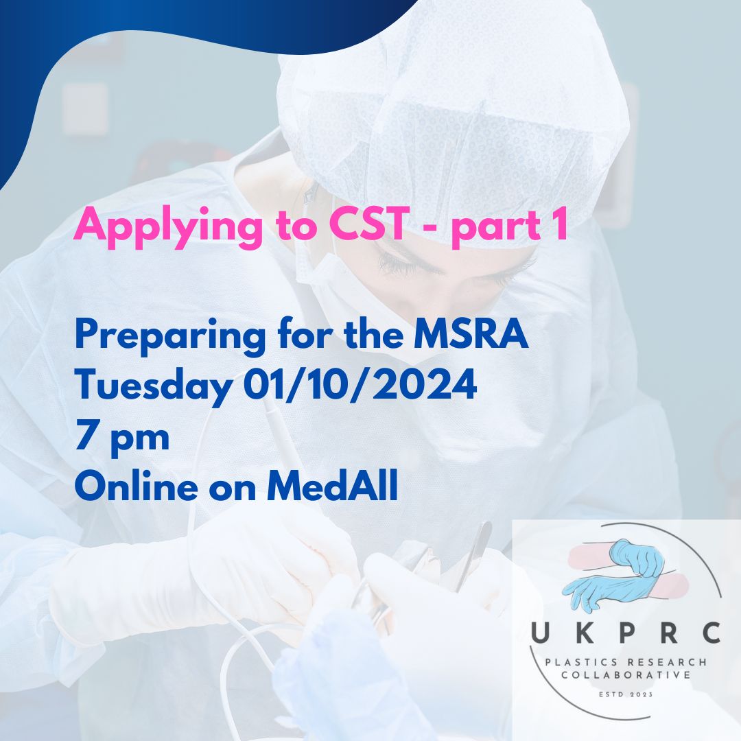 Right. Ty, everybody. Can everybody hear me? Yes, Carl, thank you so much for joining and thank you so much everyone for joining myself and Carl, my name is Anna and I am the VP of UK Plastics Research Collaborative. Welcome to our first webinar um to help you guys apply to for surgical training. Um So we'll just give five minutes for everyone to come in and then Carl will take it away and she cool. Thanks, Anna. I'll wait and then we can start when there's a few Carl. Just so, you know, we're able to see the whole screen that you're sharing rather than the slide show. So I don't know if you want to maximize or yeah, I'll switch it. I'm just um I'm just waiting in case any more people join, but I'm gonna switch to the um the slide and then we can maximize it. I think we're probably ready now. It looks like it's plateaued fine. OK. I'm gonna make a start guys. Let me know if you can't hear me well or if there's any questions. Um I assume you guys actually can't unmute yourselves on here, but you can just drop something in the chat. Um, or if you can unmute yourselves, unmute yourselves. So let me go on to the slide show. Fine. So, can everyone see the slides? I'm gonna take it as a Yes, Anna, let me know if there's anything that comes up or if there's any problems. Um, so I'm gonna give a quick talk on preparing for the M SRA, it's one part of the preparing for CST series and it's an important part, but also a small part and I'm gonna keep it relatively brief. So we're just gonna focus on the key bits. What is the M SRA? What are the things you can do for it? And how is it important for CST? So I split it up into pretty much these four points. 0.1 is just gonna be a brief overview. Just summarizing what you might already know two is why is it relevant? And there's two parts to it. One is it gets you to the interview and the second part is it actually counts towards your overall score as well. And we're just gonna discuss what the importance of each of those is. Third part is gonna be preparation, just some tips and advice and then I'm just gonna share my experience cos I think sometimes that's the most insightful in these er circumstances. So on the right, I've just summarized again, the three components for your core surgical training application. One is the M SRA the second bit is gonna be the portfolio and the third is gonna be the interview on the right in the brackets. What I've put is actually how much it contributes to the overall score that you get at the end. And at the end, once you've passed the M SRA if you get to interview, you have the interview and then you've had your portfolio validated, you're gonna get a composite score, which is basically 10% M sra 30% portfolio and 60% interview. And they compute it all together together, give you a number and then rank you with all the other candidates. Um So that is basically the rough summary. The M SRA has a special role obviously because it gets you to the interview. So it's important and it's kind of the most important bit to focus on for now, the MSR stands for a more specialty recruitment assessment. It's computer based. So you're gonna go to a test center at some point early January and you, it's usually a Pearson test center and you spend kind of the morning or afternoon there and you get the, you, you click your way through, it's pretty straightforward and it's split in 22 parts. So the first part is the professional dilemmas. And the second part is the clinical problem solving. They are equally weighted. So they count for 50% each. The professional dilemmas has got 50 items, whereas the clinical problem solving has got 97 anyway. So all interesting things you can actually just look up and you probably know yourself. Um, from my point of view, I think the two things to stress are, they are quite different exam papers. The professional dilemmas and the clinical problem solving. Um the professional dilemmas, you've got a bit more time for your questions. So you've got almost two minutes to think it through and answer it. Whereas the clinical problem solving is much more rapid fire. So you can see you've got about 46 seconds per question, which is actually less than you get for most med school exams. So it's a bit more fast paced and you really have to push to get through everything at a time. So those are my two take homes. Um The other thing that's important for the for this exam is the clinical problem solving is one that you can prepare for a bit more reliably just cos it's a bit more multiple choice focused. So you can actually have a right and the wrong answer. And I think you can actually feel your progress. Whereas the professional dilemmas is a bit more difficult because there's some nuance and there's not always a logic that carries over from one exam to the next. We'll do some practice questions in a minute and then you guys can, can see how you feel about it. I don't know what the timeline is gonna be yet for this cycle. They release it a bit later once they start releasing your actual application, Windows and Aures. So you can actually apply for the program in terms of what we had last year. And I think that's a good thing to go off. The test window was January 4th to 16th and you just had to select the time and book it in at some point in December. The weird thing, like all of the, I feel like NHS recruitment things is it's a bit random. So they will email you at some day in December. But I remember you sometimes know the day but you're not exactly sure of the time and they will release the slots and then you have to book yourself in pretty quickly. Um What else do I remember about that? I also remember that you book in the slots. You don't quite know what time it comes out. So it's good to have like a group chat maybe where you let each other know when it's gonna come out and sometimes not all of the test slots come out at the same time. So if they release the first batch at like 9 a.m. sometimes they release th