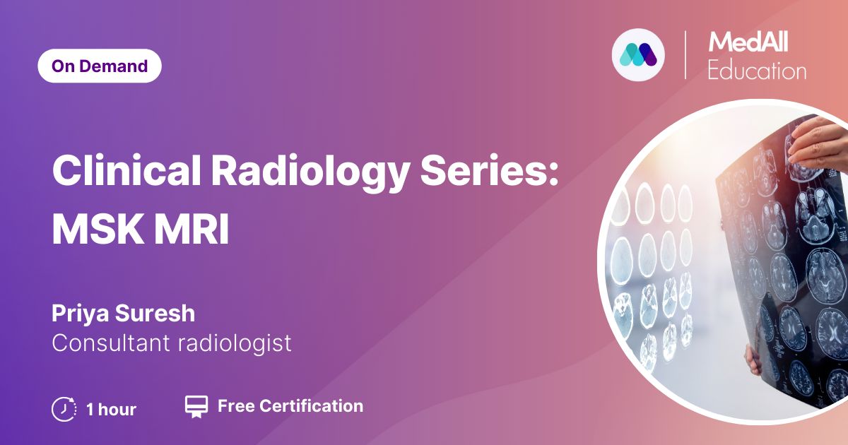 Hello, everyone and welcome to our event today. We have got the wonderful Pria who is going to talk to us about clinical radiology. MS K. MRI Rea is um she's somebody that med knows very, very well. Pria hosts the BS Sr Grand rounds on the platform. It's bimonthly and there's a link in the chat to those. If you would like to come along to the next one, you can just follow their organization and then they can let you know when the next one is happening, you'll get an invite to that. Ok? So just a quick rundown, we are gonna have as always our questions in the chat box. Er, please do, er, pop your questions in there at the end of the event. You're gonna get your feedback form and then once filled out you'll then get your attendance certificate. Ok. One other thing before I hand you over to Pria, I am just about to, er, action a poll. If you could fill this out, it would be really helpful for Pria. So if you could just click on whichever one is for, you click on that and then Pria can then, er, take it away from there. All right. Thank you, Pria. Over to you. Thank you. Thank you, Sue. Um, uh Sue. You can hear me. I, I uh get it. So, what I'll do is I will start sharing my screen and uh, yes, please. If you can, uh, let me know, uh, you know what your experience is, then I can, um, uh, I mean, get my talk to that. Uh, and then we can take it from there because then I can go through the, you know, the anatomy bit uh faster or, you know, whatever uh you feel, uh I feel that, you know, you know, and uh it will be very helpful. So just, just uh please uh uh answer that call and uh I will share my screen by that time. Ok. Um ok. Oh, ok. Fine. So I think uh the uh answer to the question was like, you know, I think many of them, many of you are learning how to report Mr means. Uh So I'm a, it has uh um uh said um I have different training hats and I love teaching and uh training and um therefore I was involved in, you know, the grand rounds of the PSSR, which is available on me. So please feel free to join that and I love running as well. So, uh uh the other thing that I do is a lot of running and we did uh uh ultra marathon of 100 kilometers continuous running quite recently. So uh you may see, you know, other things that uh uh may come up like, you know, in, in my uh tweets about running because that's my passion as well. OK. So uh we have answered about you. So uh many of your learning how to do Mr Knees and uh what I'm going to focus today is on um the uh non meni injuries. Uh because I think uh I may need to do another talk on just meniscal injuries uh which will be followed at some uh point later. And firstly, um I would like to thank me all because um this is a very good initiative. I know there is a lot of crisis in many countries and Sudan had, you know, had undergone a big crisis and I'm hoping that this session will help the doctors in Sudan to um you know, um help with the progress and with the learning and uh you know, the training there. So, uh and uh med all has made it open to everybody else as well. So thanks to uh medal to soon for putting this uh um session up and I'm hoping it will be helpful for all of you who are attending today. So, firstly, when we talk about um Mr Knee, uh uh the first thing I would say is please have, you know, a look at the pain radiograph, uh do not try and report them in isolation, especially in the context of trauma. Ok. And uh though you know, the um knee uh x-rays, only 6% of the patients may have a fracture that you can see on the x-rays. And uh there are very clear indications why you will do and when you will do the knee x-rays, and those are the owa knee rules or the decision rules. So my main message is, please have a, a look at the plain radiograph um when you look at knee trauma, hey, tomorrow. And uh as we know the Mr Anatomy, uh you know, the knee anatomy is very complex. There are many um uh ligaments, uh intraocular structures uh that you should be uh aware of and we just go through some of them, I'll focus, like I said, more on the uh ligaments today and uh we'll do the menisc inci. So the AC L is one of the main uh uh structures uh that you should be uh able to uh identify clearly. And there are two functional bundles. One is the an medium and uh uh that will be usually very low signal density. And then you have the post lateral bundle which is like a fan shaped structure. So you can have a little bit of high segment in density within these. And uh as you know, I mean, you can remember the acronym lamp um that is uh lateral uh condyle for uh mm anterior cruciate and uh medial condyle for uh post cruciate, you know, that's the attachment to the uh uh femur. Uh and, you know, it's uh in the tibi, it's anterior and posterior. So, you know, the name is self self-explanatory. So that's about AC L and on the um um you know, coronary images, again, it's seen like a fan shaped structure. So that is AC L there. And uh you just have to, you know, uh have a look at them uh regularly to know that you can have a little bit of high segment intensity because of the friendship structure they have, then you come to the PC L and uh this is usually low signal intensity. OK. Much lower than the AC L. And you can see there it's a black uh low sign density structure that you can see. Um then you have the collateral ligaments and uh you have uh the uh middle collateral ligament and the lateral collateral ligament. And uh the medial one has two components that is a superficial and the deep, the deep has the meniscal uh tibial and uh meniscal femoral ligaments. And uh the superficial component is the one that you can see on the side that comes down and attaches. And the most important. One of the most important ones is the anterolateral stabilization. So you also have a postal stabilization that we look at. The an lateral stabilization is provided by the iliotibial tract. And this is one of the favorite things that I keep asking my knee, which is the most anter