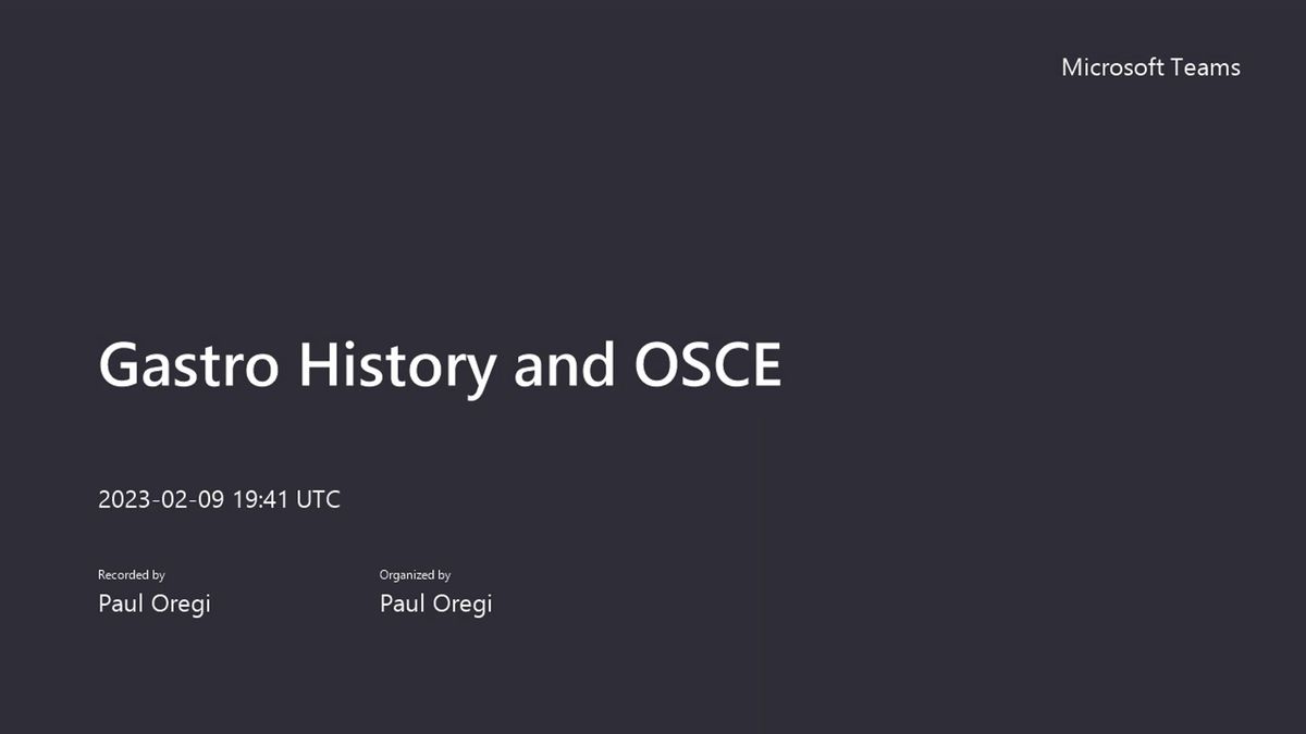 Slides. So that's up signs to look for in an unwell patient who's got abdominal pain, they might make you think of something like um I'm retired to hemorrhagic pancreatitis. And then the last, last quiz, anyone know these important abdominal um, signs and triads feel free to message in the chat. So there's Murphy sign. Mcburney's point, Charcot's triad. Do you know what they are or what disease there indicate if you see them in a patient? So, Murphy's sign something we mentioned earlier in the abdominal exam is when you palpate with their hand underneath the, and they're kind of right upper quadrant just underneath the costal margin. And when you're pressing, ask the patient to take a deep breath in and if they catch their breath and stop breathing because of the pain that right upper quadrant area, when they're, when you're palpating, then that's Murphy's sign positive. And remember you need to test that on the left hand side as well and make sure there's no pain when you're pressing. Um So, you know, it's just pain on the right rather than the pain being generalized. And so Murphy sign is that stopping breathing and pain when you're pressing on the right upper quadrant and the patient's taking deep breath in. And what is that a sign of? So, it's commonly a sign of curly cystitis, which is inflammation of the gallbladder. Because when you're putting your hand up against the right upper quadrant of the patient, you're kind of pushing their gallbladder against the liver and the rib cage and they take a deep breath in and then the, the diaphragm and the rib cage hits that inflamed gallbladder and they're gonna catch their breath and that's going to cause pain. And so, you know, there's irritation of the, of the gallbladder. So, cholecystitis, um, if there's Murphy sound positive, whereas if they're comfortable and do any press on that, right upper quadrant and they take a deep breath and there's no pain, then you, um, it's less likely that there's an irritation of the gallbladder. So that's a good sign for cholecystitis. Mcburney's point is the area. Um, if you draw a line from the umbilicus down to the anterior superior iliac spine, it's two thirds of the way along from the umbilicus to the anterior spine of the pelvis. And that's the location of the pain where appendicitis usually manifests. So it usually starts off centrally and then migrates down that line across the mcburney's point. And so mcburney's point is often that place in the right, um, side of the lower side of the abdomen where appendicitis pain is felt most commonly uh And then finally, Charcot's triad is try out of three symptoms. So, fever, pain in the right upper quadrant and jaundice and usually indicates something serious like ascending cholangitis, which is an inflammation, infection and inflammation of the common bile duct. Usually because there's a stone that's blocking it. And then obviously, if there's a blockage of that system, then it's not gonna be able to drain and you'll get stagnation of bile, build up of bacteria and infection. Um And so the patient has an infection. So they've got a fever, they've got a blockage of the bile top. So they get jaundice and they've got um usually a stone or in some inflammation going on there. So they're gonna have pain. So, pain in the right upper quadrant fever and jaundiced should make you think of Charcot's triad, which is cholangitis, which is where a um emergency condition that you might see and patient's with, with uh usually with gallstones. All right. Hopefully that was useful. So that is everything for the history examination talk. I think um Paul's helpfully put the feedback link in the chat from correct. Yep. So, hi guys. Thanks. First of all. Thank you very much, Doctor Sharma for that time. They'll probably good know someone who's got Noski coming up this summer that I can tell you that it's very helpful. Indeed. Um Yeah, if you guys could just fill in the feed back, please and just make sure that you can get a certificate and it's also important to Doctor Sharma can get proof that he's been teaching today. Um So please do just fill it in. He'll take literally one or two minutes and then you'll automatically get the, the um uh certificate and the slides should also be available on metal in a few days. Um Once those are uploaded. But um if you guys have any free, any questions for Doctor Sharma, just put them on the chat or on you or if not. Thank you very much for coming and we'll see you in the next lecture in our series. Thank you guys. Thanks. Thanks for coming. Everyone. Hope it was useful. Thanks a lot. I'll just keep the um meeting going for about five minutes and then once everyone's, I'm headed off, I'll close it down. Perfect.