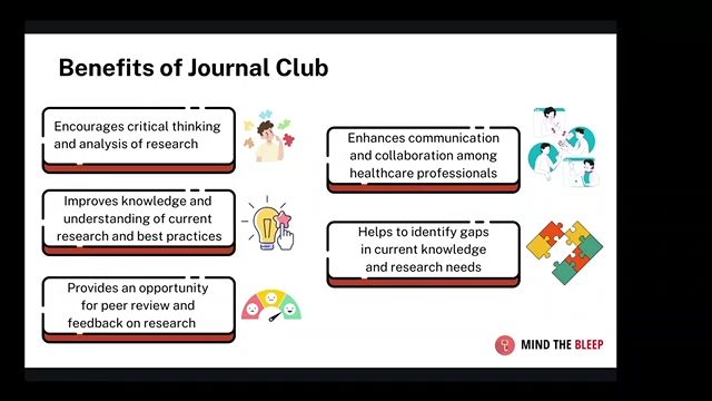 - Gain an understanding of the purpose and benefits of medical journal clubs, including how participation can improve critical thinking, stimulate knowledge growth, and promote collaborative learning among healthcare professionals.