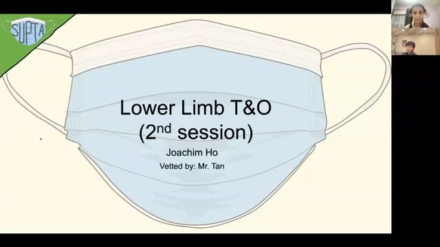 Hi, everyone. Welcome to our second talk in the Lower Limb Trauma Orthopedic Series, um led by Joey Kim today. Um And um before I hand over to him, um I just want to thank our sponsors once again, um for allowing this talk and this educational series to take place, um including our new sponsor, the Royal College of Surgeons as well. Um And yeah, without further ado, I'll hand over. Hi, I'm Joe Kim and um I'm 1/5 year medical student at UCL and welcome to the second lecture in the Lower Limb Trauma and orthopedic Series. So, just carrying on from um where Adam stopped last session two days ago. Um We're continuing with the anatomy of the lower limb, the sec. Um and, and, and I think he covered the, the hip, the thigh and then some parts of the knee. And so we're gonna continue down from the knee through to the leg and the um, ankle and the feet today. So, um firstly with the knee, um basically what's involved the bones and the soft tissues. The there, there are the femurs tibia patella and in the um the important thing to really know about the, the, the bones here is the patella that's formed within the, the tendon, the quadriceps, femoris tendon, and its primary function is to act as a fulcrum to increase the power of knee extension. As for soft tissues, you've got the menisci, the ligaments and I'll touch a bit on the bursas in terms of knee movement. Um So the knee is primarily a hinge joint, but there's, there's quite a lot of degrees of freedom with the, with the knee. Um As I said, you can, you can do extension, um flexion, it also does a little bit of lateral rotation and some medial rotation. An interesting thing here is that when the knee is completely extended, um the entire leg basically has a mechanism of locking where if you can imagine a fixed tibia and um the femur on top, it slightly rotates. Um It's so yeah, so it slightly screws medially upon a fixed tibia. And this isn't from muscles or, or, or soft tissue. It's basically because of the bony structures of the um the femur and how it articulates with the tibia bone. And therefore, as it completely straightens, there's a medial locking of the femur into the tibia and then to flex your knee, then you require a muscle to kind of laterally rotate the femur in relation to a fixed tibia. And that's carried out by the um by the pop muscle. And that's basically the diagram of how it works. So when it's completely extended, it kind of medially rotates and then to flex it, you need to unlock the knee and that's basically done counter directional. And so in terms of the meniscus, um the main function is to deepen the grooves um where the female articulates to the tibia, and it also acts as shock absorbers. Um The medial meniscus is a lot more fixed to the tibia and the lateral meniscus is a lot more, it's, it's less attached. So there's a lot more freedom and thus you get a lot more injuries with the medial side and it's more significant because it's very fixed. And uh so there's a lot more tearing potential and then the bursas, they basically just synovial fluid encapsulated. Um They act basically to lubricate the knee joint and you've got a few bursas. So the suprapatellar one above the patella, um the prepatella, the infrapatellar and the semimembranosus bursa in the diagram on the top, right, you can see a subset bursa. Um I personally don't believe it's very important to remember that, but the other bursas are um more of core knowledge. And then in terms of ligaments, you've got the collateral ligaments and these are just very like fibrous tissues that are very um ta and rigid. So they don't really allow for a lot of movement. They, they are there just to provide support. So you have your medial meniscus and the lateral meniscus and um the medial me, me, the, the medial me, sorry, the the the collateral ligaments. What am I saying? So yeah, the the, the me, the medial collateral ligament is attaching from the femur to the tibia, whereas the lateral collateral ligament goes from the femur bone to the head of the fibula. So it's more of like a sideway. Um You're prohibiting like lateral movement kind of and then the cruciate ligaments with the most popular one being the anterior cruciate ligament. Well, of athletes often have like a career ending moment if you have an ACL tear. Um so the ACL the anterior cruciate ligament is basically also another very like um fibrous tissue that does not allow anterior translation of your tibia relative to your femur. So if you can imagine you're lying down and you have your knees at about 90 degrees flexed and you pull onto your tibia, you don't want to allow the tibia to slide forwards relative to a fixed femur. So that's anterior tran um anterior translation, you want to stop that. So if you can imagine um anatomically, you want to have a very rigid fiber going from your posterior articulating surface of your femur to the anterior articulating surface of your tibia to prevent that translating movement. And then same goes for posterior cruciate ligament where it attaches from the anterior part of your tibia to the posterior part of the articulating femur. So you don't want to allow the posterior translation movement and, and then I'm going to come to the leg and the foot and the ankle. So, in terms of the legs, you've got the bones and the muscles mainly. Um and then I'll cover the um vessels and nerves after this. So the bones tibia fibula, and then in the feet, you've got your tonsils, metatarsals, phalanges, very similar to um bones in your hands. And the muscles in the legs can divide them into anterior lateral and the posterior compartments. And interestingly, they actually form the extrinsic muscles that go all the way into the feet. And at the feet, you've got your intrinsic muscles which originate and attach within the, the feet themselves. So you can divide them into two groups, the dorsal and the plantar group. So the tibia or the shin bone, um you can easily quite feel it if you pa