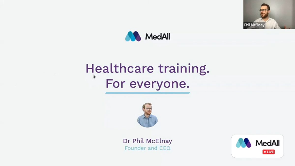 No. All right, guys. So now we're moving on to, uh, we're moving on to fill in the county. Who is the founder off Meadow on which we are all here today and on which we've been doing all of our teaching as well. So, uh, thank you for waiting fill where? A couple of minutes day. And we're going to move on to the poster whole straight afterwards. So feel all that. You introduce yourself and we'll get going. Actually here. Um, it's, um it's really brilliant. Teo, be here to watch, um, some of them using questions coming through to here from incredible speakers. I just love hearing Daph story. I love Ryan's bite. Look on innovation on It's kind of create to have his experience up the Royal College of Surgeons off inland as well on, um, it's just my pleasure to kind of be here and share a little bit by our story in some ways, and innovation is, Well, my name is Phil Michel a I A medic by training. I was a cardiac surgery register on by then, actually jumped in the industry for a short period of time and then jumped into med Tech, and I'm gonna share a little bit by our journey, our mission. A team that metal on that we're going to jump into post your time before hearing from from Michael afterwards, our missions a metal is really to make great health care training accessible to everyone on a corner out of a problem we've seen. Articulate by the World Health Organization, who have explained that we feast a workforce crisis in healthcare and we need to treat and 18 million Mawr healthcare professionals by 2030 that actually means Skilling up there might have healthcare professionals we treat and overnight buying one thirds. If we started training tomorrow on we scaled up by one third, then we would meet that 18 million additional health care professional target that that's a really tall order, especially when you look at how long it takes to tree and some commission. So some medics take 15 years to treat, and it cost $700,000 all in to tree and some control positions and surgeons. So it's a really, really tough call coupled along. Signed up is what The Lancet have described as severe institutional shortages in our healthcare training capacity and they've talked about this in their review. Healthcare trimming internationally. It's something that's seen in the low, middle and high income countries. It's no a problem. That's the spoke to one of those countries in the UK we need 43 thighs and additional doctors by 2030 and Indian. We need 3.6 million additional health care professionals to rule like what's been described is the greatest move towards universal healthcare that the world has ever seen. China required over 100,000 obstetricians are you in In order for them to relax, they're single child policy, and you combine that with institutional shortages on we have this toxic mixture put sure we don't have enough health care treatment capacity to train the healthcare professionals that the world needs. Um, so we need to start looking at this in a different way. On the World Health Organization has highlighted high that could be done with digital. You begin to call in on the problem, and and what's even worse is where resources are out. There least this problem is at its greatest, and there are 11 countries on the continent of Africa that do not have a single medical school at all for us. We we come sit by on bet that happen and is everyone's job to begin to solve some of these problems. And that's one of the greatest things that can happen in innovation is when we stop competing and we start collaborating. That's what we've being really passionate about doing it, that metal hide we make accessible healthcare training available, upscale. How do we not make this all abide us? How do we imparted amazing organizations? You're already doing incredible healthcare training just to do it more efficiently with more resources to trend more people. And that's what we've been working on on. We started off Soling really simple problems when we started listening, Teo Healthcare Organizations. You were delivering teaching and training. We heard patterns happening all over the place. We saw care organizations using by seven or eight different tools as we started to deliver digital education and I was becoming inefficient on. People were spending are selling up teaching sessions when actually they were busy conditions. We needed to focus just on doing the actual teaching. We saw them setting up eventbrite. It's to take registrations or Google forms. It was free. We saw them posting a schedule on a week's website. We saw them in healing. I assume links and reminders manually. People people were then joining us in coal. After the session, people were being asked to fill in a Google for ubiquitously. Across the world. Organizations had someone in in office. He was coping and pasting mediums from a Google sheets in the word documents and saving the MS Pdf's and emailing certificates like two people manually. And then after the event, usually like one big a bite of storage on seems that people were dying, looting and then having it to them. You're YouTube holdin. Don't even don't even start us on if they were trying to then make about availability synchronously people after a teaching session, adding extra Google form links to their YouTube videos or venue of videos, and then the certificate cycle starts all over again for on demand content. That's what we did is we actually just looked at that process when we picked one of those big problems to start with feedback and certification, and he started to build tools, the automated done for organizations and then we started looking at another part of that process registration, and we combined those two things. So if you register, you get you by form on down a certificate automatic if you tend the event on. Then we looked at the video piece height of people actually joined the call instead of biting out to another to just bring that into one place as well. And then we looke