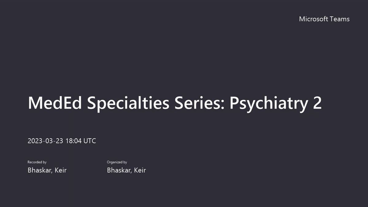 Imperial. Um and currently try and cross and I'm gonna cover a couple of topics today. There's quite a lot to cover. Um So I'm going to try to give you a good, a good overview, but I'll leave some time if people have questions as we go through conditions and things. Um This essentially is the session plan. So we're gonna start with CAMS, then do a little of old age psychiatry. Um We're gonna look at substance abuse and then the last bit which is psycho sexual kind of um sight conditions will be quite short. Um So starting with CAMS, I think CAMS um is quite an important topic in your five. Um It can come up in your paces. It's quite a good overlap for them to test you in terms of your Pedes knowledge and your psych knowledge. So, in that sense, um I think it's quite important to think about the main difference between adult psychiatry and camps is that you really need to think about um safeguarding in particular, thinking about what other causes as to why patients coming in with anxiety. Is there more going on at home than what meets the eye. Um And also that the emphasis is much more on the psychological conservative and social management as opposed to going in with a pharmacological agent. Um So, we're gonna start with autism spectrum disorders. Um So autism is um a disorder which is characterized by deficits in that in a child, social communication and social interaction. Um Children tend to present around three years of age, that's not to say that they're not autistic before that. It's just that those deficits become really apparent when they start to meet those social milestones. Um Three years, probably around the age as well when a lot of Children start going to nursery and you can really start picking up that they're not engaging with their peers in the same way as you might expect. Um Often when you start taking the history though, you can see that these milestones aren't being met at a much earlier age. So kind of classic history might be a child who doesn't smile quite at the right age. So it takes them a little bit longer, they don't really need eye contact, they have a very narrow repertoire word. So they might just say two or three and not really progress on to full sentences as you would expect. Um The kind of key areas are thinking about kind of restricted behaviors or stereotypical behaviors. So I think the classic examples would be kind of lining up cars or having one specific interest and the interest is very narrow. So rather than saying, oh, I like all football players. The Children were present saying quite fixated on perhaps one specific or one specific team. Um It has about a 1% prevalence within pediatric and adult populations are statistics at the moment, say that it affects males more than females. But there's actually quite a lot of movement within the field to demonstrate that women are probably equally affected. Um they just present differently so we aren't diagnosing them. I think that females tend to have a much later age of diagnosis than males. Um Your risk factors are having an affected siblings or family history being preterm, parental mental health conditions generally raise your risk. But in particular schizophrenia, um if you have a D H D or learning disability of other, other kind of cause um and then chromosomal disorders in particular things like Down Syndrome is associated with autism. Um So thinking about how these Children present. So if you get this as a station in your um paces or if it comes up in a question, the three kind of areas that you really want to exactly explore in your history are impaired social interaction. So parents will say things like my child doesn't really want to play with other Children. They're not interested in play dates. They may have very poor eye contact um and they may have inappropriate behavior so they might not pick up on social cues. So um, parents might say, oh, they were at a party and another child fell over and started crying and the other Children went to comfort her. But they don't, they, my child didn't seem to pick up on that and they just continue doing what they were doing. Um, then the next thing is to detect whether they've got repetitive or restrictive behaviors. So, um, we're talking about, we're talking about rigid routines that when disrupted lead to severe distress, I mean, and tantrums out of proportion for what's going on and beyond the age. So, you know, I think everyone knows about the terrible twos or toddlers and it's quite normal to have some tantrums kind of 2 to 3. Um but they tend not to be provoked by um change out of a rigid routine or things like that. Um, Children with autism can have tantrums all the way through their life. And actually some of the behavioral management is about helping parents to manage that, especially as Children grow and become larger and become there, there can be a risk to parents being injured. They'll have stereotypical movements. Um, they would be really be engaging in play as well. So when you do a play assessment, they won't, they won't come up with imaginary friends, they won't hold conversations and things like that. And then the other third area that you would need to sport, um explore speech and language. So, Eckel areas that's kind of where they're repeating a sound. Um particularly that sounds, sounds, that sounds similar. They have very delayed speech development. Some Children will actually present not being able to speak at all really. Um And they'll have limited facial expressions so they can seem quite removed from everything um in terms of investigation. So um there aren't you do need to consider organic disorders. I think the main thing to think about is just to do a normal developmental examination and physical examination of the child. And think about is there an underlying chromosome abnormality? Is there something genetic that's going on? Um Otherwise it's more about diagnosis. So um we use a couple of screening tools. So childhood a