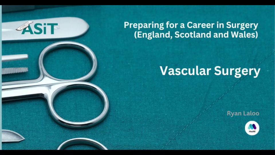 next up, I will be telling you why vascular surgery is the best career and why you should go into it. So I am a S T three trainee based in Yorkshire, and this is my journey 2017. I graduated from the University of Birmingham, and that's picture with, um, my parents and I in front of our University Hall auditorium, and I'm going to talk to you about my journey through med school, then going into academic foundation program and then an academic clinical fellowship in Vascular. Professor Steve Watson was one of the mentors that I met really early on in my medical school career, and he sort of guided me through some basic science research in my second year during our summer break, where I was able to apply for a welcome trust research fellowship and this involved looking at long inflammation and just getting involved in histology and sort of animal experiments. I found that experience quite useful just in terms of the mentorship that he offered and also a guidance through grant applications and and just paper writing, and then went on to do anatomy dissection project. And that was under the spinal column and lumber muscles, and at that point I thought potentially orthopedics. I found my surgical placement to be quite engaging and friendly and supportive, and and I think part of that was due to the teams that I had been exposed to. But also, I think, partly due to just turning up earlier awards, getting involved with cases and just expressing my interest. And I highly advise you to just demonstrate enthusiasm and interest when you go into the woods. And I think that certainly goes a long way in getting involved in and just being part of their team. I had an early exposure to the operating theater, and I remember seeing a hernia operations and vascular bypass is in my fourth year of medical school, and even though I I couldn't do very much at that point, the consultants were really keen to get me involved and start to teach me skin stuttering and and basics. I think even just getting involved in scrubbing with scrub nurses and learning how to prep and drape are key skills which which will be invaluable in your career as a surgical trainee. Mentorship and role modeling is certainly something that has guided me through my career so far and just sort of expressing interest in different areas and showing enthusiasm. I certainly open up many doors for me. So after my foundation program in in the West Midlands, I started my I started my vascular surgery f one job, and that's where I I really fell in love with it. I had some fantastic mentors there and they really pushed me. They provided a lot of guidance and and support under water and in theater, and I remember one of the senior registrars just giving me that extra push to apply for training and to just believe it myself. So I think it's really important to find mentors who believe in you and also those who can provide advice on on a career and then went on to do some gastroenterology pediatrics. I had an academic job and ngp so quite a broad experience, and Antonia has spoken today about complimentary specialties. I personally found working in GP and any quite useful for my surgical training. I think making friends along the way is really key, and it's always useful to to work as a team and work collaboratively, and it's only through through, uh, teamwork that that we can maximize our efficiency and our output a bit about the clinical academic career that I went through. So I after foundation program, commenced an academic clinical fellowship and a CF and that was based in leads. So Yorkshire and hum ordinary. And it allowed me to run through a program with the vascular training number from ST One that involves 75% clinical work and 25% academic work. And this is a picture of the University of Leads. On the left, you can see the Leads Institute for Cardiovascular Metabolic Medicine, where I was involved in basic science research, and on the right, you can see a beautiful building, which is the leads General Infirmary, where I did my clinical work and vascular calls. So a typical day for vascular trainee is quite varied and really exciting. Elective list can involve a lower limb bypass surgery, which is roughly around four as long, um, but that surgeons time and then this. This will tell you otherwise. A triple A repair, which can be quite satisfying to observe major amputations and the fistula is in vascular access cases for renal failure patients, and these are really nice cases where you can get your favorite music in the background. You can get chairs, sit down and creates a really nice fistula. So I really enjoy those in our patients clinics. We see diseases of the arteries, veins, lymphatics, and you can see cases of peripheral disease, varicose veins, venous leg ulcers, Tripoli end stage renal failure, carotid artery stenosis and diabetic foot disease. So you can really see that you're going to be exposed to arteries throughout the body. Apart from arteries of the brain and and of the heart, you've got exposure to interventional radiology. And with the new curriculum, there's a, uh, an enthusiasm to to merge, training and and increase our exposure to both open and the vascular work with the war grounds. We have general clubs teaching medical students and on your vascular and call the two things that you worry about bleeding and ischemia In the emergency operating list, you'll you'll have exposure to rupture. Tripoli Acute Um, ischemia created Endarterectomies for T i N stroke patients and diabetic foot sepsis. In some major trauma units. You'll also be the resuscitative surgeon and call and you'll deal with a lot of trauma. So this is a picture of, uh, Triple A and you can see an open Tripoli repair with the graft. Um, so hold on to the aorta on the right. And again here, open Tripoli repair on the left femoral artery endarterectomies are quite satisfying. And you use a device called a Watson chain, which peels off the plaque from the inner