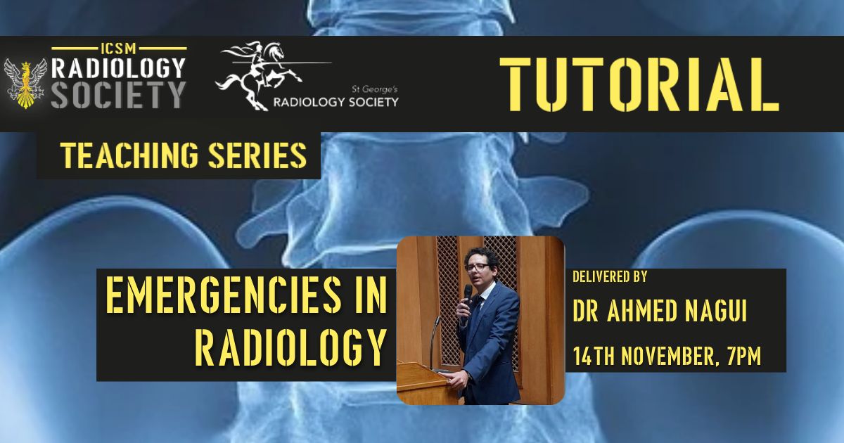 An interactive session aimed at final year medical students, join us for this talk to prepare you for emergencies in radiology. Delivered by Dr Ahmed Nagui MD (PhD), FRCR, DFMS, Consultant Radiologist. This talk is hosted by the respective radiology societies at Imperial College London and St George's University of London.