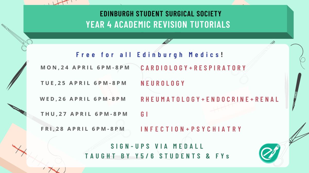 - 24 April (Monday) - Cardiology & Respiratory: https://share.medall.org/events/esss-year-4-academic-revision-tutorials-cardiology-respiratory