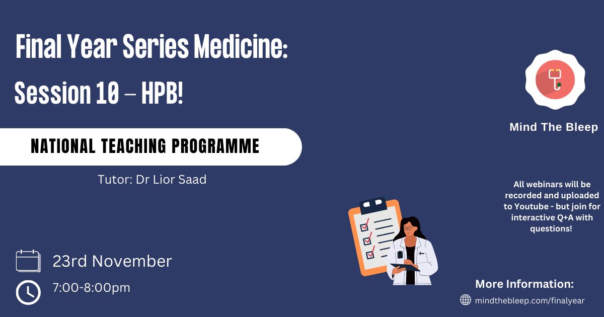Our Medical School Final's Revision session tackling Upper GI Surgery. Expect SBAs with explanations, as well discussion of high yield exam topics.