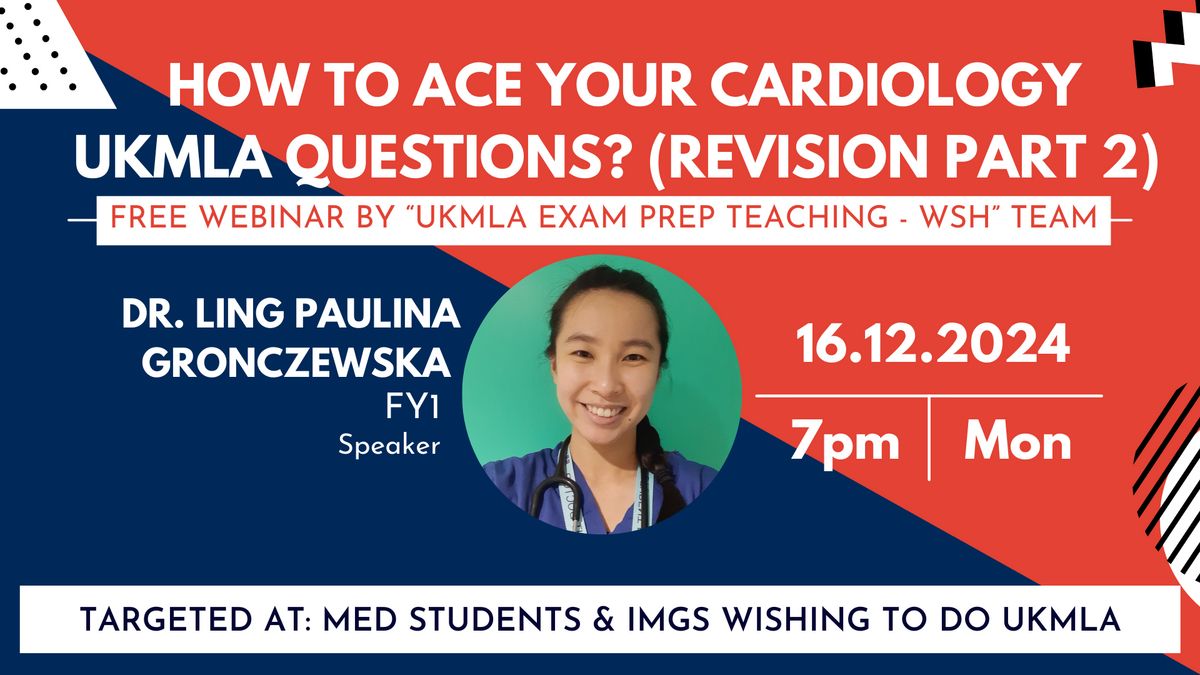 Join us for an engaging, interactive and free teaching webinar about Cardiology for the UKMLA exam (Part II) led by Dr. Ling Paulina Gronczewska, an experienced educator and current FY1 doctor with a passion for helping future medical professionals succeed. This webinar is designed to equip you with more niche cardiology knowledge (in comparison to Part I) to ace the UK Medical Licensing Assessment (UKMLA).