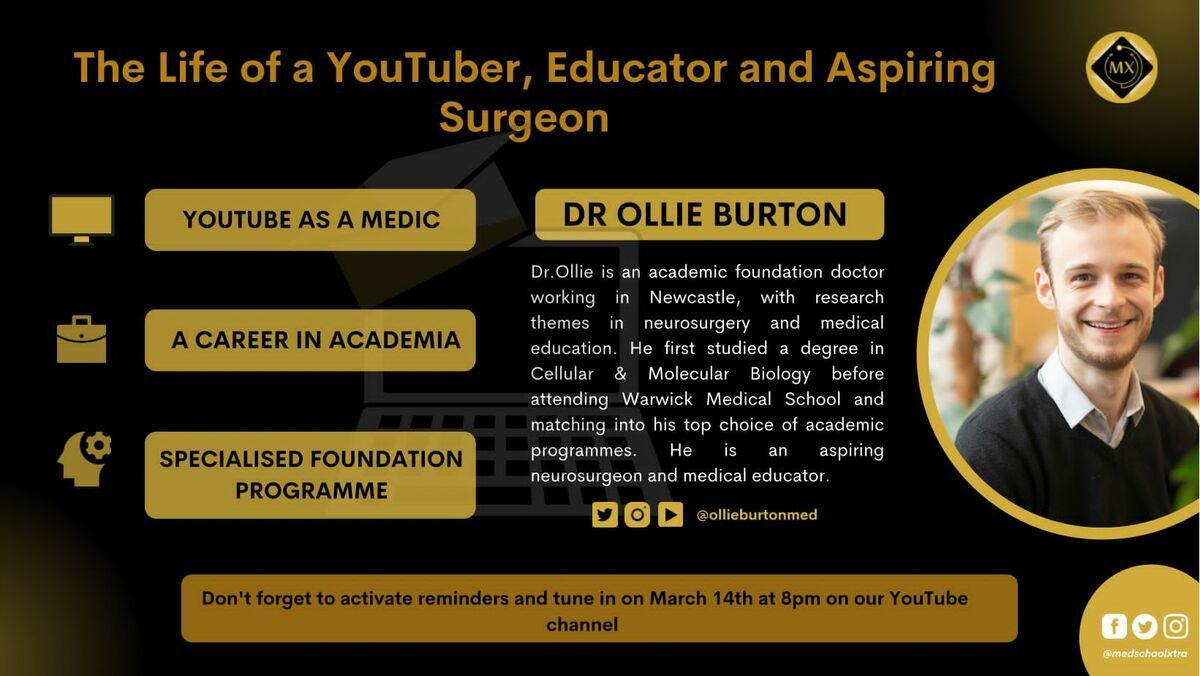 Don't miss the opportunity of listening to some insights into Dr. Ollie Burton's career - a YouTuber, educator and aspiring surgeon š¤