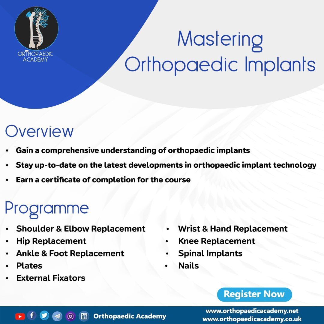 This course is designed for orthopaedic surgeons & residents, orthopaedic nurses, and a;; other healthcare professionals who are interested in learning more about orthopaedic implants.