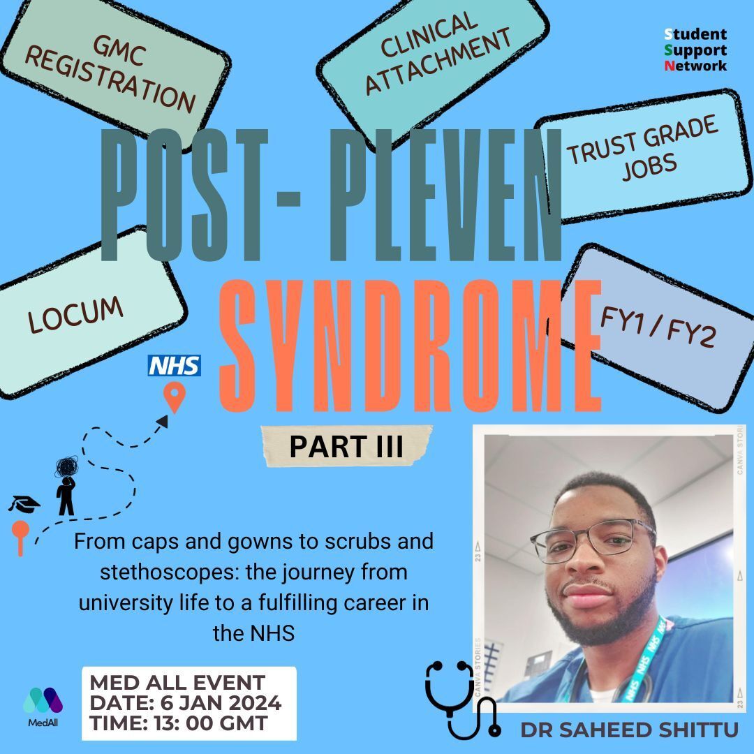 This is the last webinar in our series with Dr Saheed Shittu! He'll be offering an in-depth view into life after Pleven, detailing the role of an FY1 within the NHS. Additionally, he'll be going through how to assess patients and getting to grips with NHS documentation! This promises to be a valuable session for all, don't miss out!