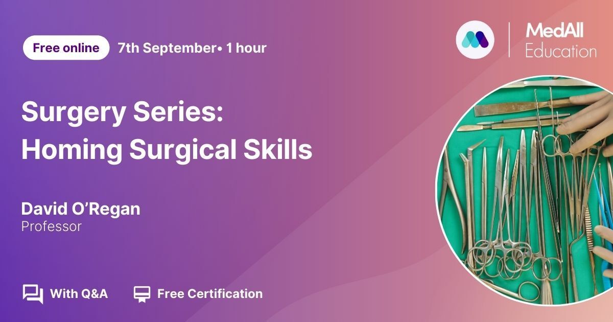Today we are going to get hands on with BBASS David O'Regan, Professor at Royal College of Surgeons Edinburgh. David hosts events on the platform every Monday evening at 8pm (BST) right here https://share.medall.org/organisations/black-belt-academy-of-surgical-skills. All Davids events both live and catch up come with feedback form and attendance certificates.