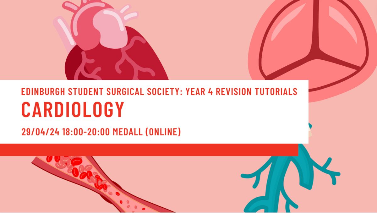 The ESSS are once again running the Year 4 Revision Tutorials Series! This series will consist of five days of tutorials from 6-8pm every day from 29th April - 3rd May, covering all the key topics to help you ace your exams, OSCEs and beyond! Tutorials will be taught by experienced senior medical students and doctors in relevant specialties! This session will be covering everything you need to know about cardiology to help you ace your OSCEs and exams. Make sure to sign up to other sessions in the series and be best prepared for your exams! Links to the other sessions can be found here: https://app.medall.org/c/edinburgh-student-surgical-society